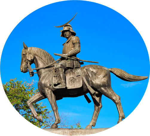 大切にしたい『人』とのつながり、そこから放たれる黄色の流線型は、伊達政宗公の兜の前立てをイメージしております。