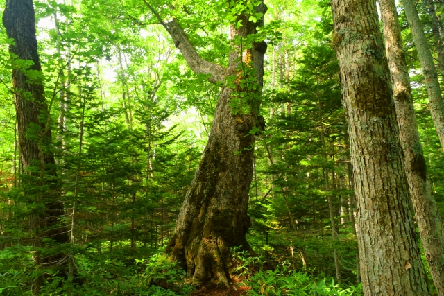 オークに属するミズナラの木は複数の幹が一つにまとまって大きな幹を形成しており、まるで太陽に向かって手を取り合うように美しく成長します。